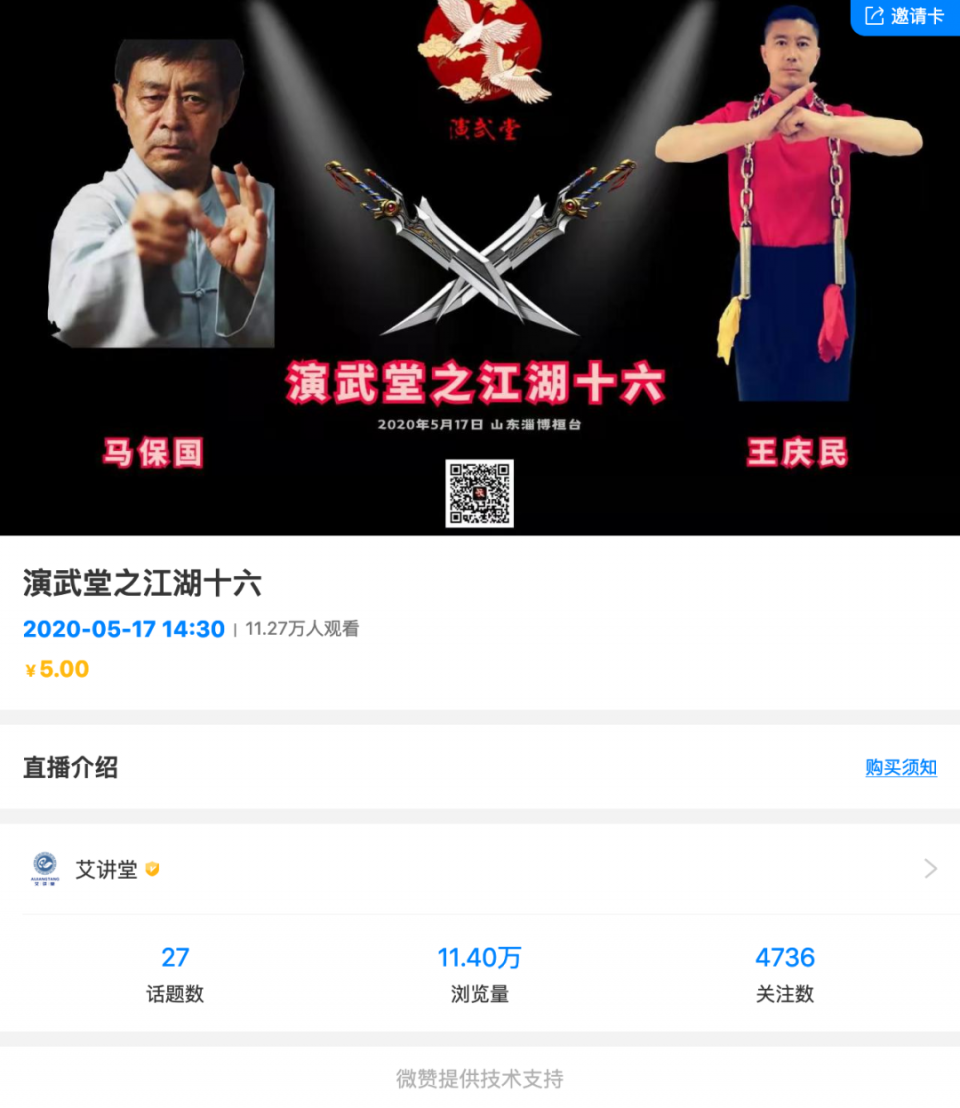 马老师显然是有武德的,火了之后并没有着急恰饭,仅仅在8月18日接了一场武馆的开业活动。