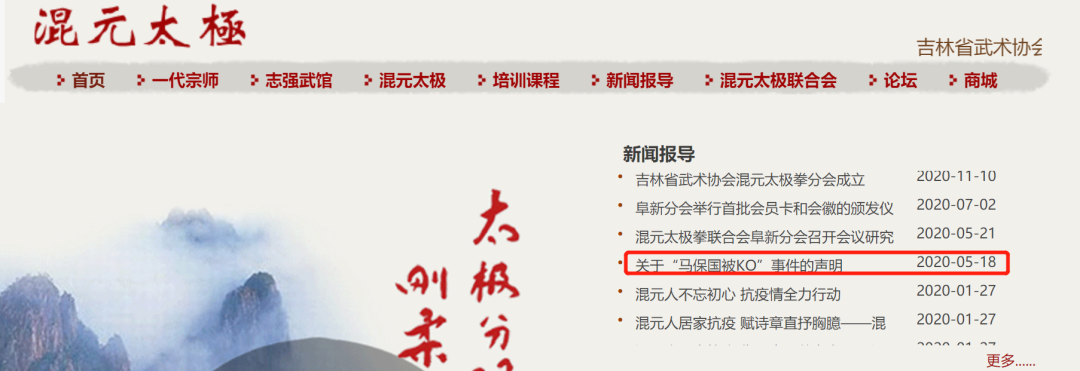 结果混元太极的首页放了一个关于马保国被KO的声明,原来此混元非彼浑元,马老师的是浑dan的浑。