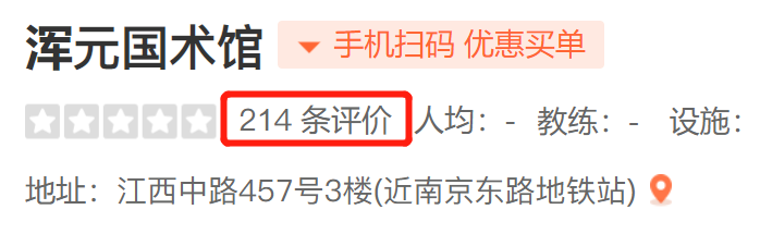 这场比赛给马老师带来了前所未有的热度,大众点评显示浑元国术馆的评论数高达214条