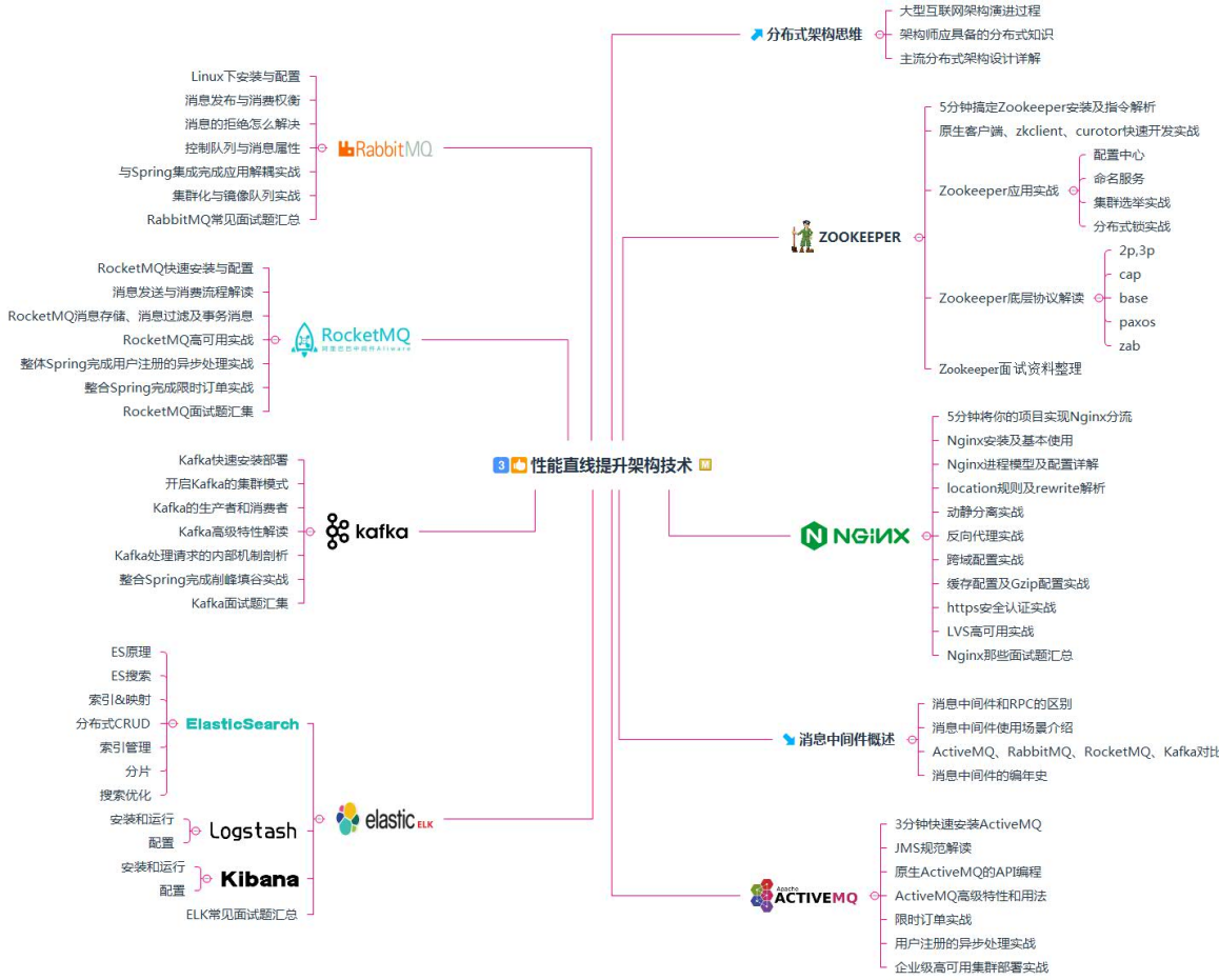 - 性能直线提升架构技术:ZK,Nginx,RabbitMQ,RocketMQ,Kafka,elastic