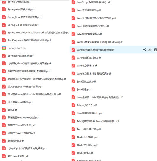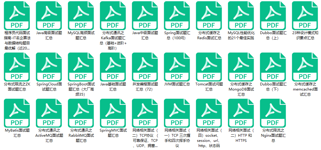 2. 学习笔记汇总(PDF):JVM,JAVA集合,网络,JAVA多线程并发,JAVA基础,Spring原理,微服务,Zookeeper,Kafka,RabbitMQ,Hbase,MongoDB,Cassandra,设计模式,负载均衡,数据库,一致性哈希,JAVA算法,数据结构,加密算法,分布式缓存