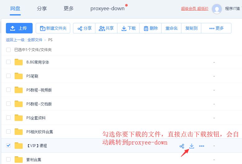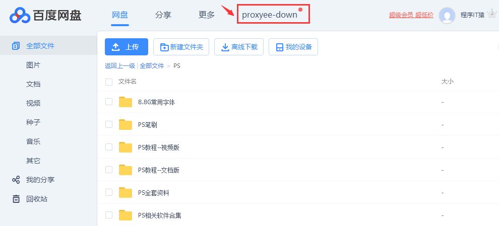 证书安装成功后,这时重新进入网页版的百度网盘会出现下图所示的proxyee-down的字,这时就可以开始使用这个软件下载了 。