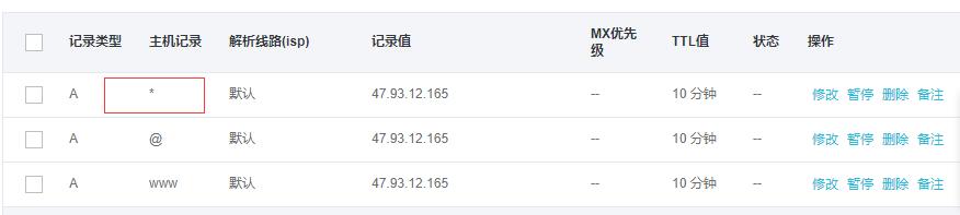 把域名的A记录解析指向我们的公网服务器,这一点一般人都能想到。解析的时候只能加IP,是不能带端口号的,即只能使用默认的80端口。(不讨论域名转发)