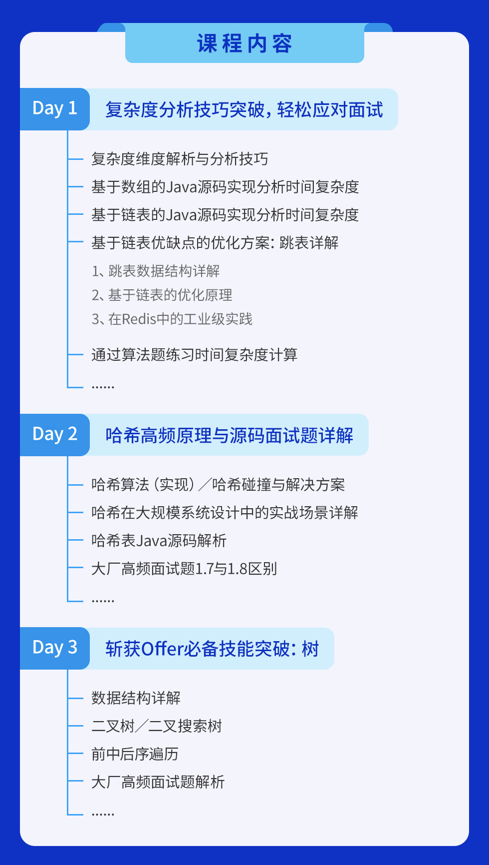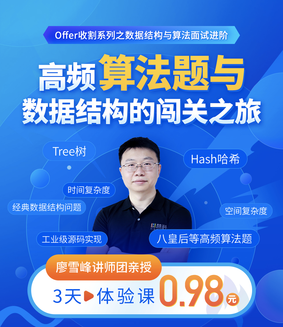 课程从复杂度分析技巧,到哈希高频原理与源码面试题详解、Tree,全方位提高你的算法能力,做offer收割机: