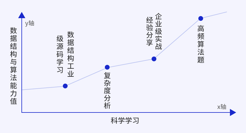 比如学习数据结构,一定要有一条主线:复杂度。当基于这条主线学完数据结构后,加上你对复杂度的掌握,再去进行算法的理解会变得轻而易举,刷题的时候不再迷茫,对面试官的灵魂追问也能轻松应对——题目有几种解法?每种解法的时间复杂度是怎么的?最优解是什么?通通不在话下。