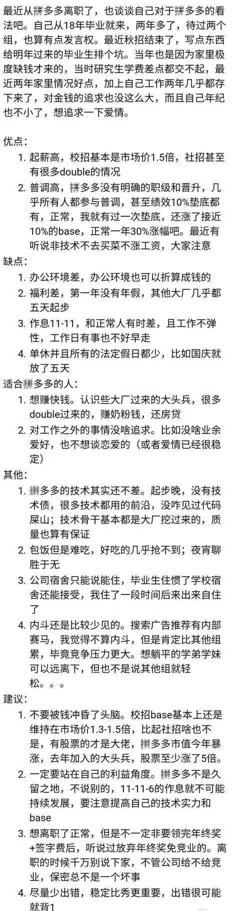 @无码禅师 :程序员发长贴讲述真实某多多:薪水高,普调高,环境差,厕所少