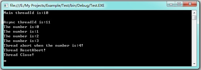 | ThreadAbortException | 在对 Abort 方法进行调用时引发的异常。无法继承此类。 |