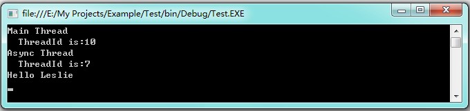 12 myDelegate.BeginInvoke("Leslie", new AsyncCallback(Completed), null);