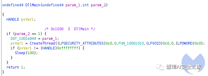 主函数调用DllMain来创建一个线程,在同一进程上下文中的新线程中执行它的函数。