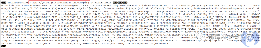 该文件包含一个图像标签(“ INCLDEPICTURE ”),该图像标签连接到如下网址,然后下载一张图片作为文档模板。