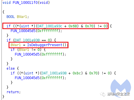 通过调用“IsDebuggerPresent”来检查调试器是否存在。NtGlobalFlag和 IsDebuggerPresent检查如下图所示。