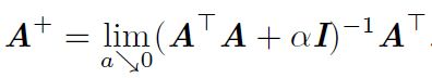 Moore-Penrose伪逆使我们能够解决这种情况,矩阵A的伪逆定义为:
