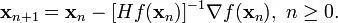 上面讨论的是2维情况,高维情况的牛顿迭代公式是: