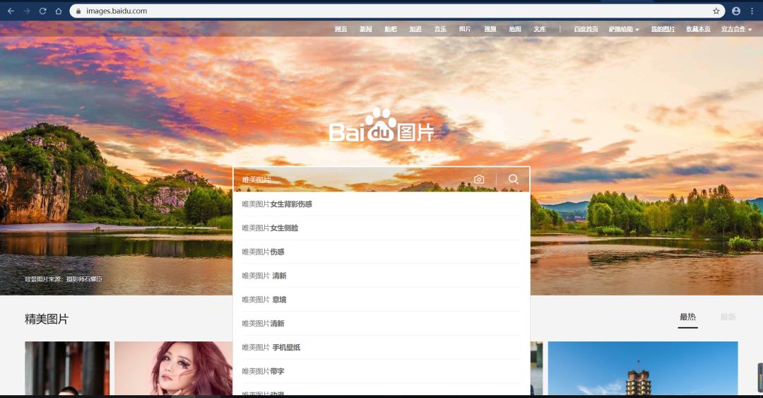打开百度图片的网页搜索唯美图片