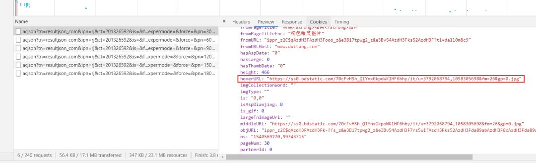 果不其然,让我发现了对应的json数据,我们打开一个json数据来看一下,里面是否有我们想要的图片的url地址,果然找到了。