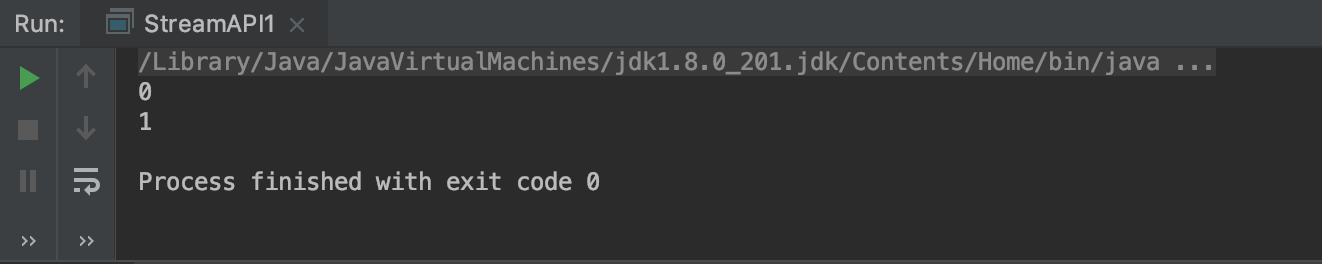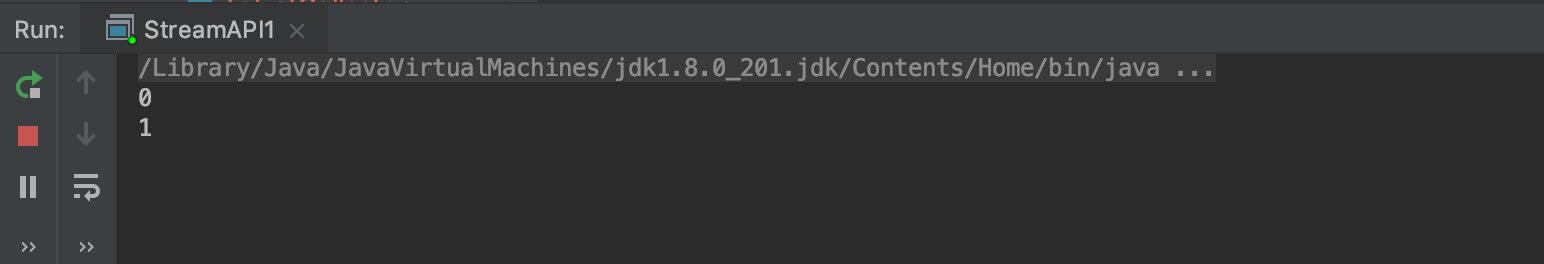 IntStream.iterate(0, i->(i+1)%2).limit(6).distinct().forEach(System.out::println);先调用 limit 方法,限制流中只有 6 个元素,然后去重,结果打印 0,1。程序结束。