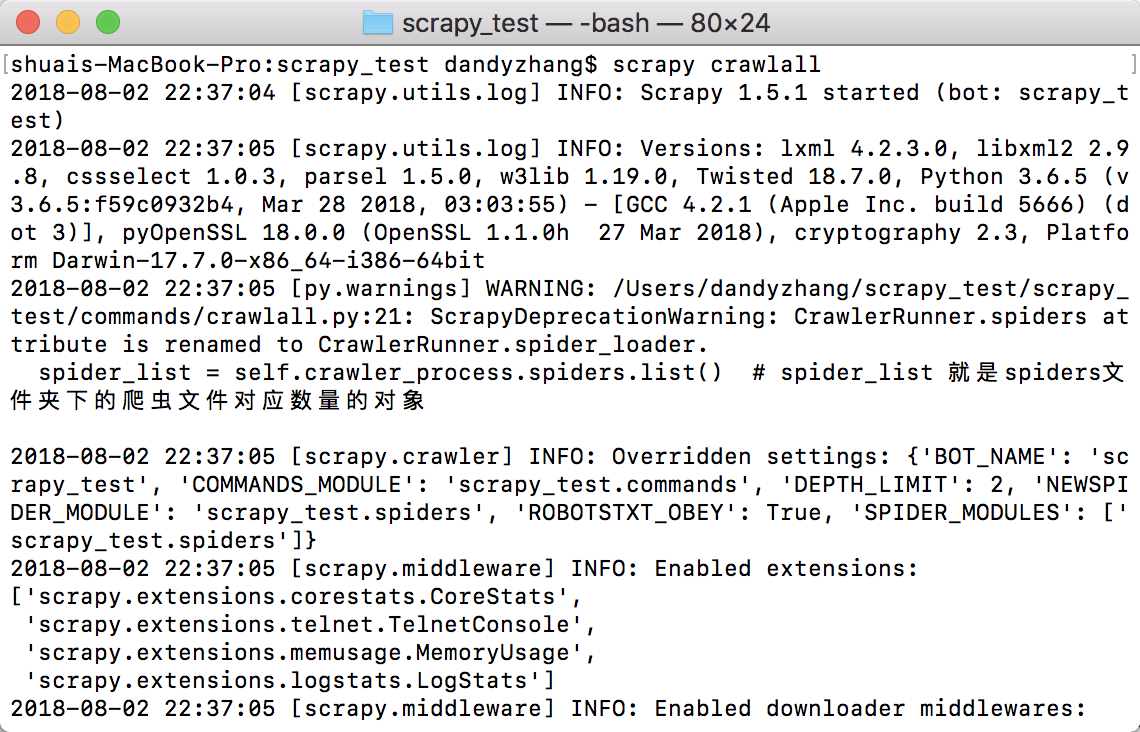 shuais-MacBook-Pro:~ dandyzhang$ scrapy startproject scrapy_test