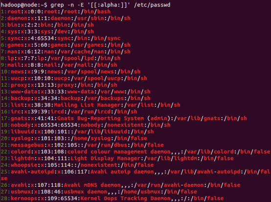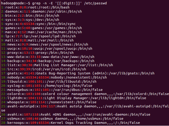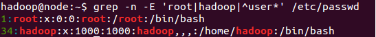 ②grep -n -E 'root|jsj|^user*' /etc/passwd(提示:扩展正则表达式)