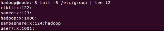 ⑤tail -5 /etc/group | tee t2