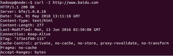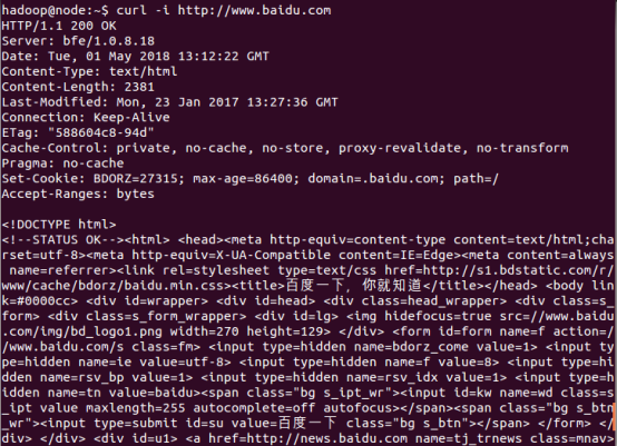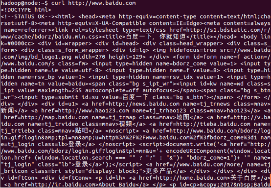 (2)不加任何选项使用curl时,如 curl http://www.baidu.com ,默认会发送GET请求来获取链接内容到标准输出。