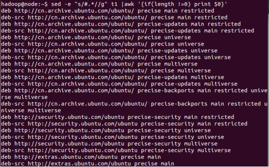 ③sed -e "s/#.*//g"t1| awk '{if (length != 0) print $0}'