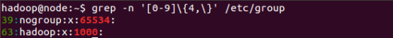grep -n '[0-9]\{4,\}' /etc/group