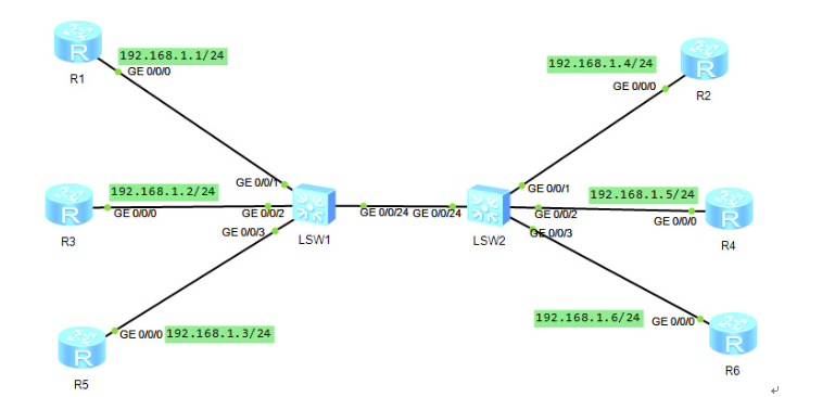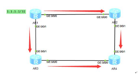 此图中,AR1和AR4之间为附载分担,AR2和AR3会将AR1生成的LSA传递给AR4,AR4收
