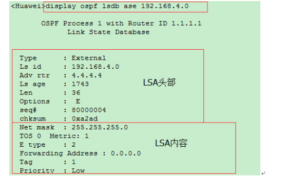 - AR1上存在静态路由,将其引入OSPF进程中,此时AR1变为ASBR设备,全AS内泛洪五类LSA,Seq Number=a,LS ID为网段信息,Advertise Router为自身Router ID1.1.1.1