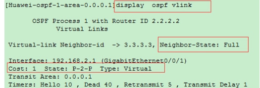 [Huawei-ospf-1-area-0.0.0.1]vlink-peer 1.1.1.1 simple huawei