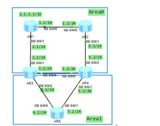 [Huawei-ospf-1-area-0.0.0.1]abr-summary 1.1.1.0 255.255.255.0-将区域1