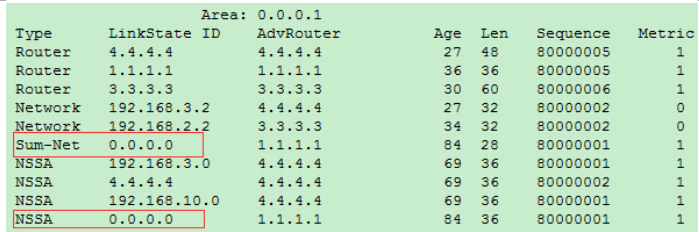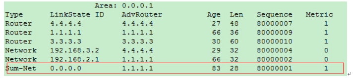 注:外部路由汇总只能在ASBR或NSSA区域7转5的ABR上做路由汇总时,默认的花费为