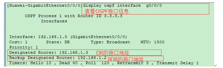 [Huawei-GigabitEthernet0/0/0]ospf cost 10-----增加花费10