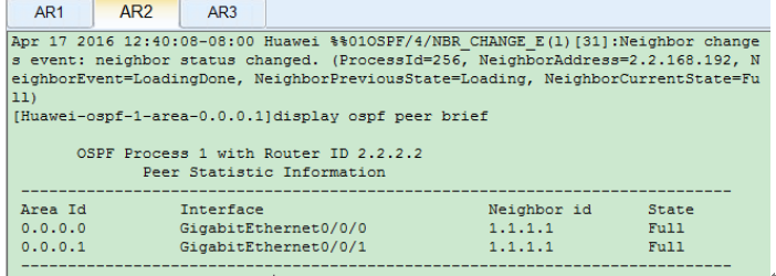 - AR2会将网络拓扑信息理解为自身与对端1.1.1.1的设备使用双线连接,于是与对端建立邻居关系