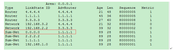 cost------------修改汇总通告的cost值,默认聚合路由的开销值为0