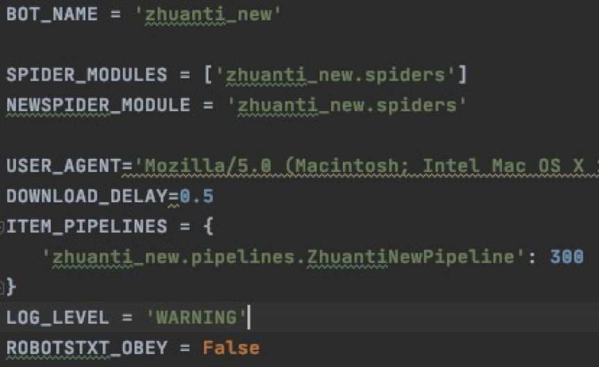 (3)settings.py:主要用于设置请求头、报警处理等相关问题