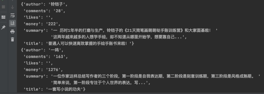 爬取运行结果如下: