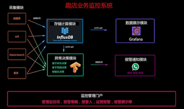 目前趣店集团监控系统已经覆盖到所有产品线的注册、登录、下单、授信、风控、放款、还款等流程, 接下来会继续在全面、准确、及时各方面进行优化升级,为趣店集团线上业务的稳定性保驾护航, 更是为广大趣用户放心使用我们的产品,提供绝对可靠的保证!