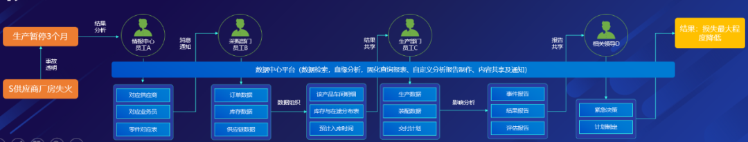 数据应用即为数据的应用、交换与服务,需要通过Finereport、FineBI等可视化的途径直接服务于企业的一线生产人员、监管人员、业务负责人、公司高层以及企业董事,以下图为例,数据应用应由统一的平台支撑,涉及数据预警、数据检索、数据分析、固化查询报表、自定义分析报告制作以及内容的共享和通知。