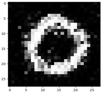 在经过了10000次的迭代后,generator网络生成的图片已经接近手写数字零的形状。