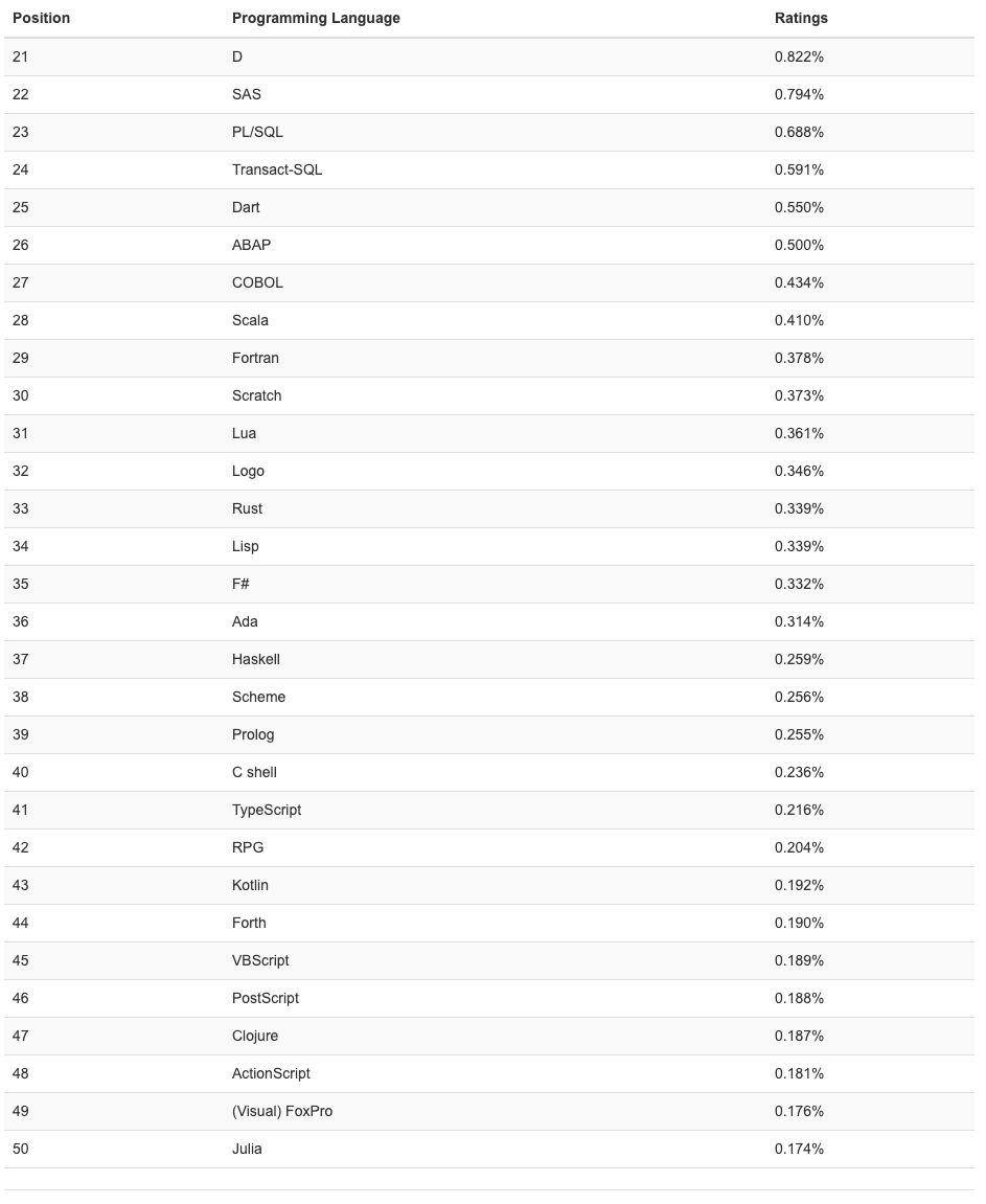 排名 21-50 的编程语言