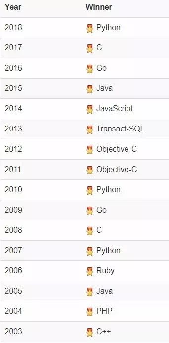 编程语言“名人榜”( 2003-2018)