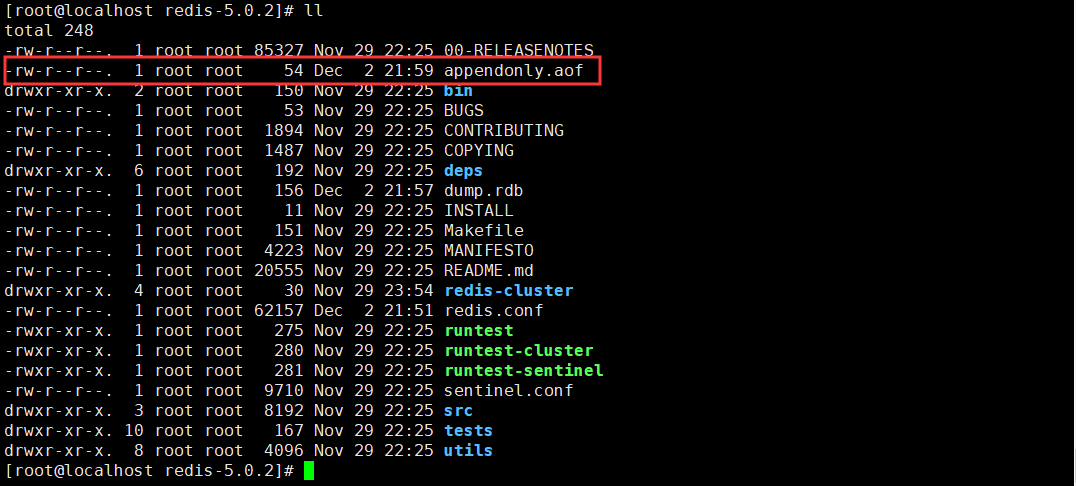 (2) 到dir(redis.conf这个配置文件里面的数据持久化的目录属性)所在的目录下查看,如下图: