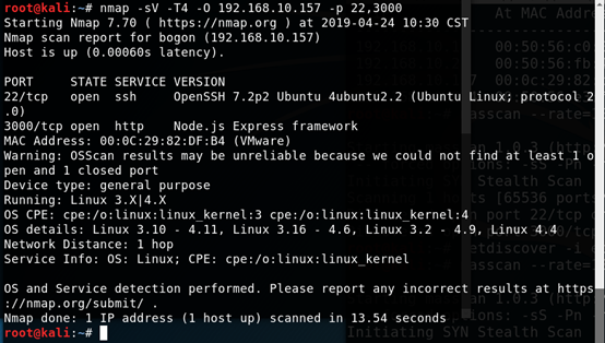 1. nmap -sV -T4 -O 192.168.10.157 -p 22,3000
