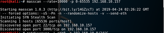 1.masscan --rate=10000 -p 0-65535 192.168.10.157