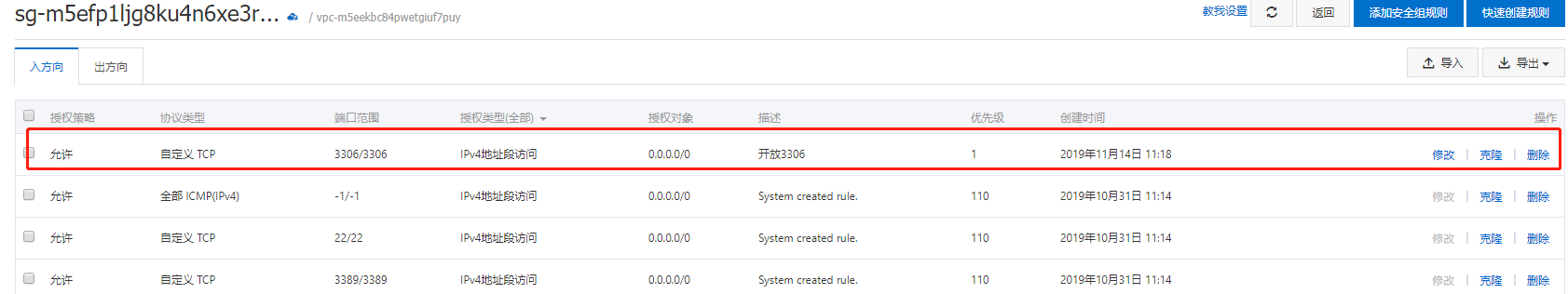 (三)、阿里云的安全组添加3306端口
