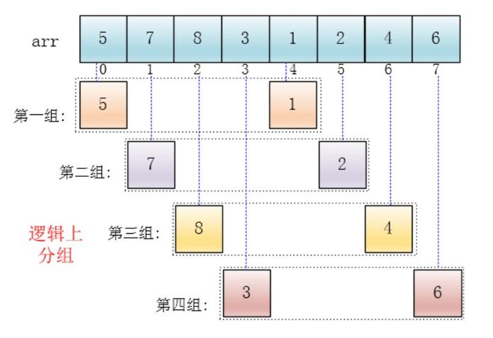 //arr[h], arr[h+1], arr[h+2]....开始排序
