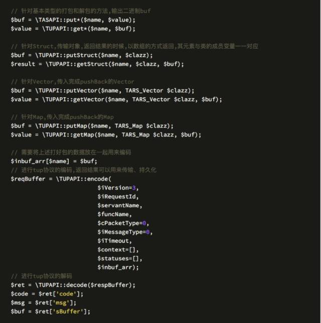 开发者在完成扩展的编译工作之后,就可以非常方便的使用TUP协议进行打包,解包与编码解码的工作了。