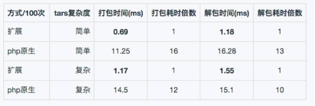 从这个表格中可以非常清晰的看到,无论是简单的Tars协议,还是复杂的Tars协议,使用扩展进行打包解包都比原生PHP的性能提高十倍以上。当遇到复杂的业务逻辑,需要调用大量的使用Tars协议的后台服务的时候,这种效率的提升会让服务的吞吐量上一个数量级。