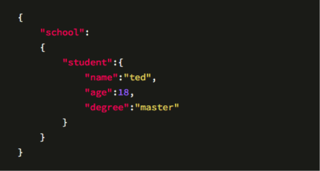 假定有一所学校,一个学生,如果用JSON标识的话,如下所示: