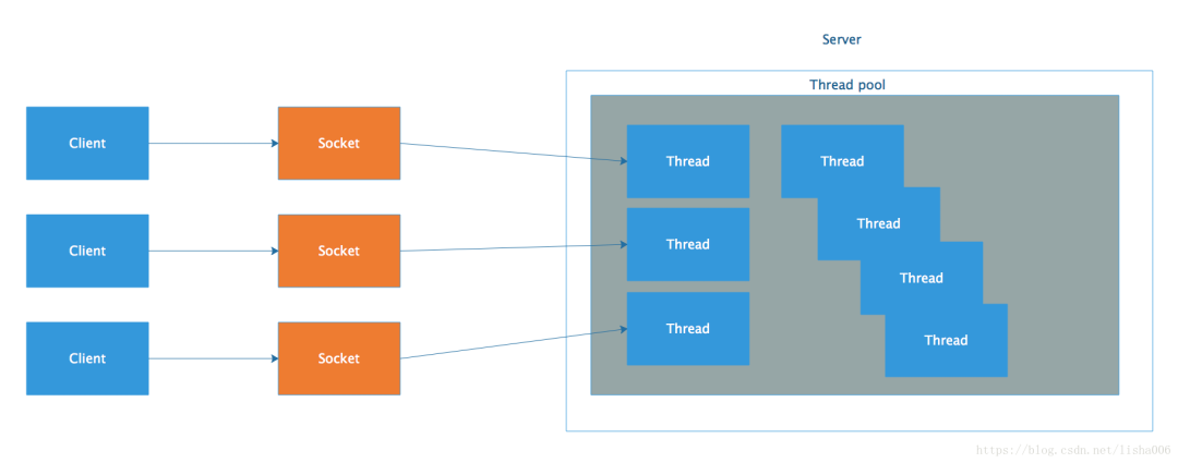 首先看一下BIO,如果有一台服务器,能承受简单的客户端请求,那么使用io和net中的同步、阻塞式API应该是可以实现了。但是为了一个用户的请求而单独启动一个线程,开销应该不小吧。java语言对线程的实现是比较重量的,启动或销毁线程,都会有明显开销,每个线程都有单独的线程棧占用明显的内存。引入线程池,就能很大程度的避免不必要的开销。